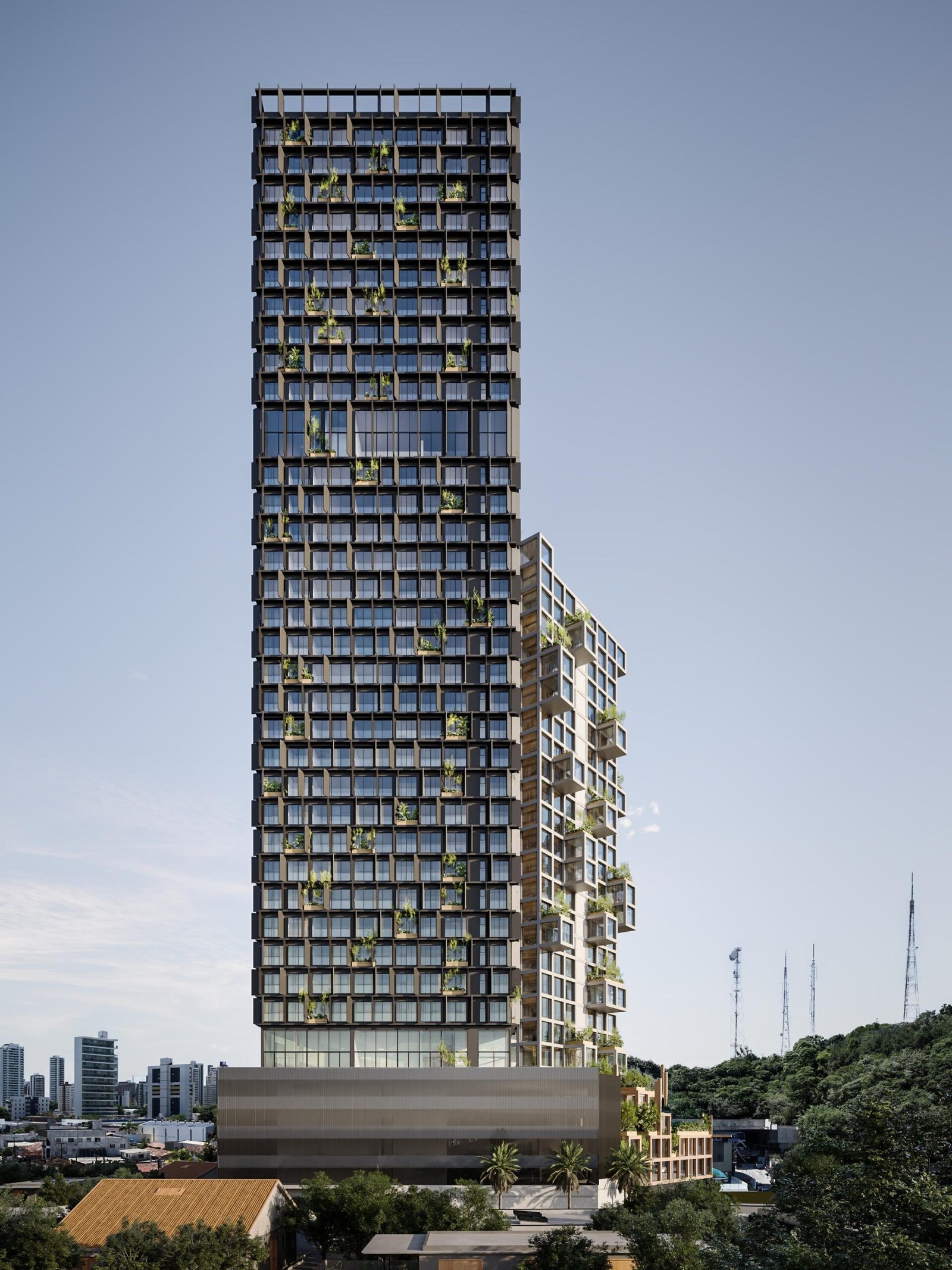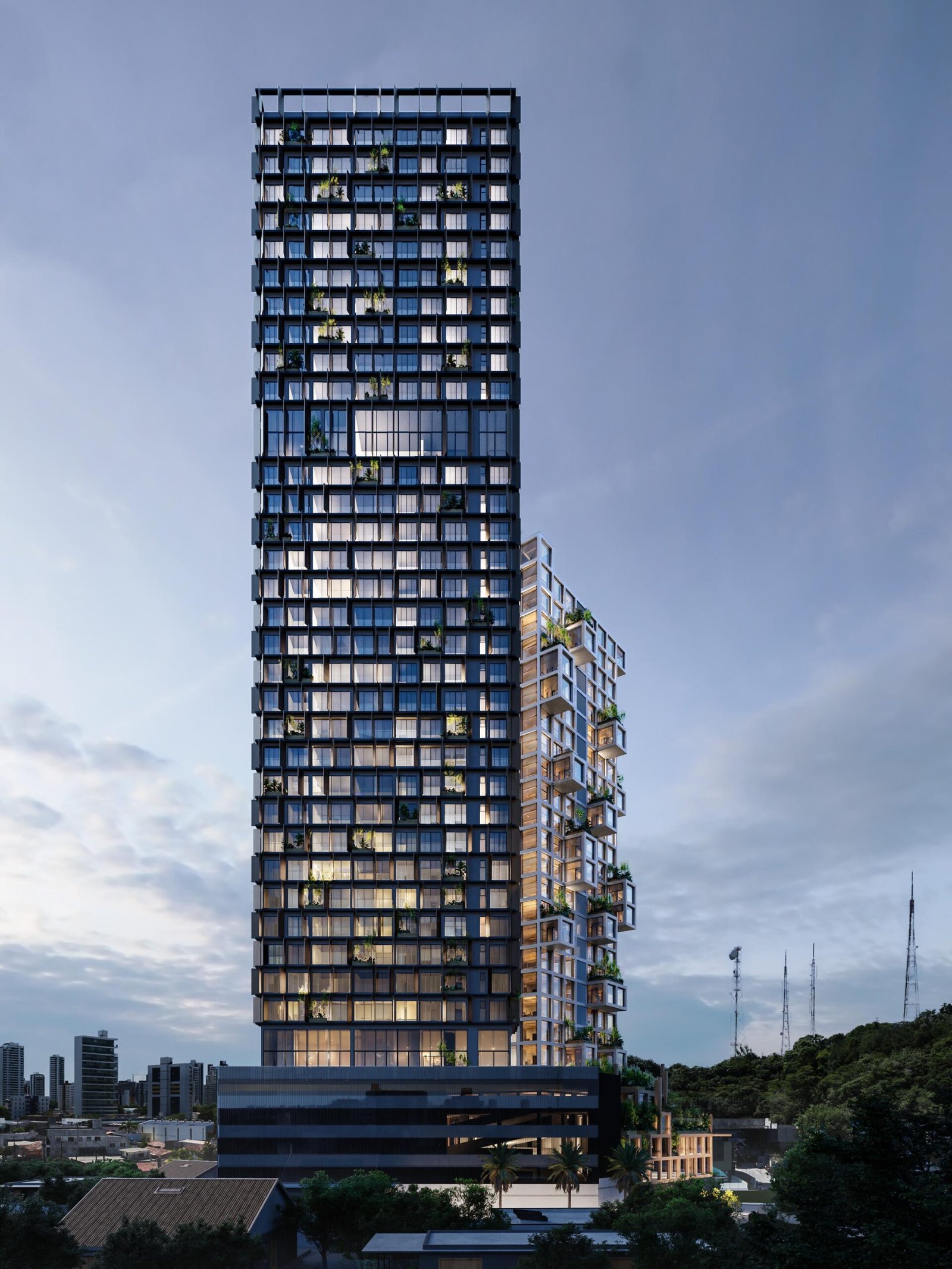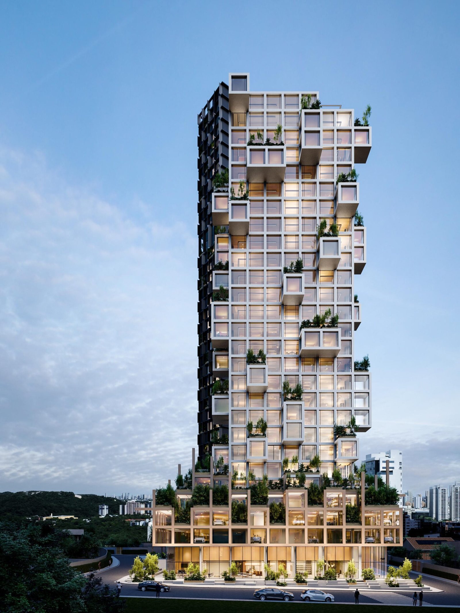 Tetrix Douro reúne residencial e comercial em torres integradas com arquitetura modular contemporânea. Projeto assinado pelo Estúdio Lago e Felipe Bezerra Arquitetos (FbA), trazendo um conceito único para o Tirol.